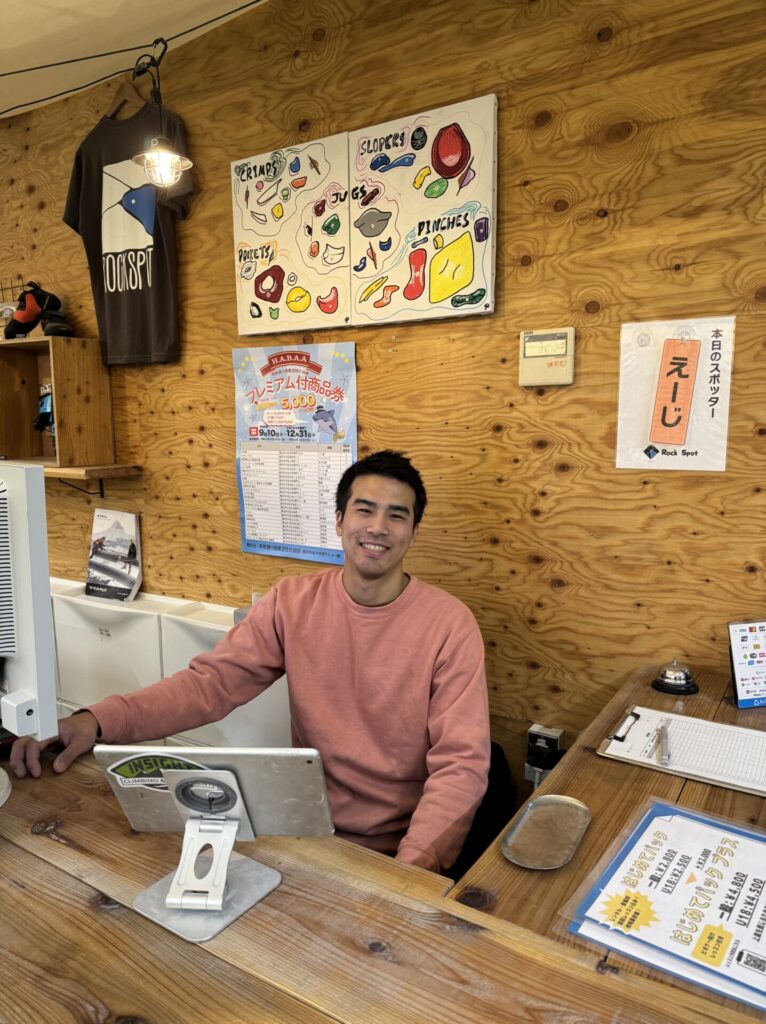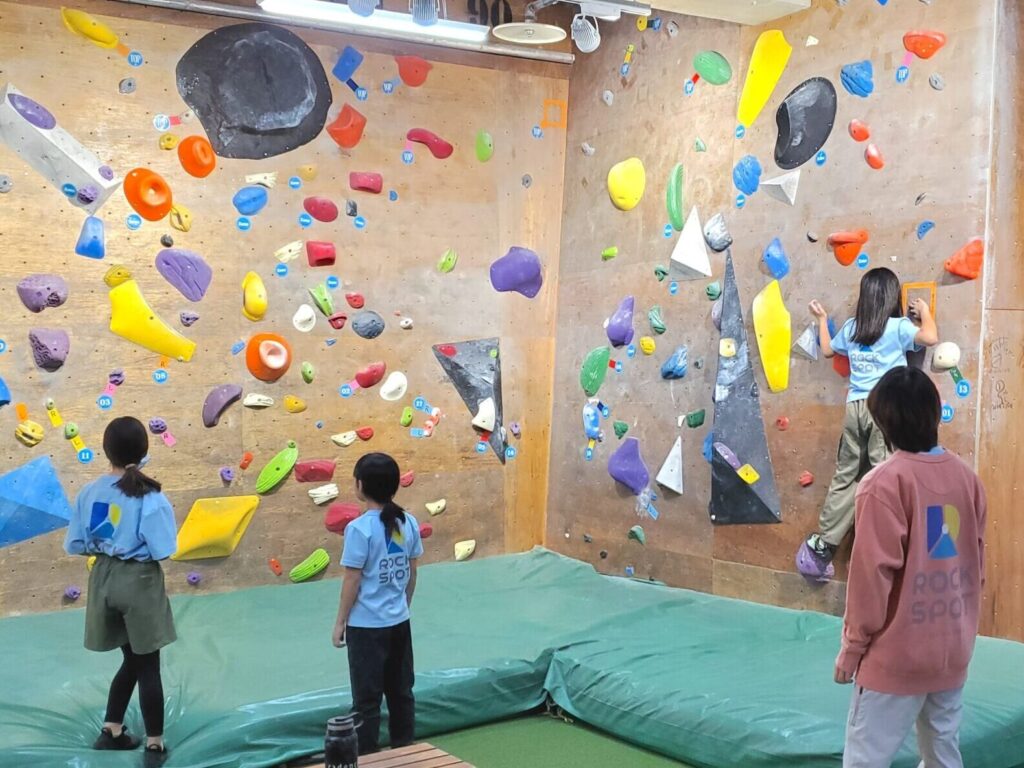 階段を下るとすぐにボルダリング壁が見えてきます。